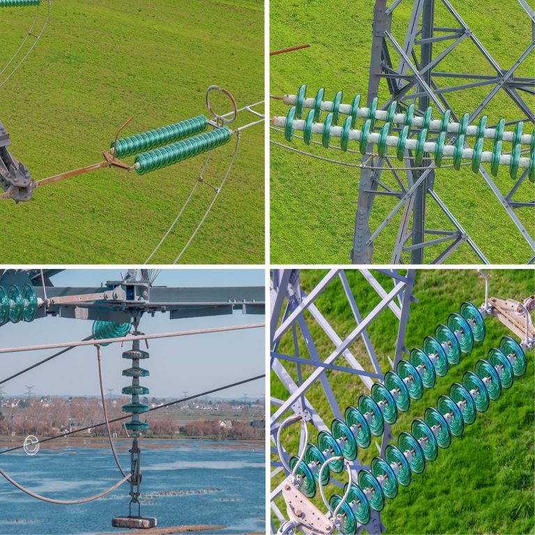 Contrôle de chaînes d’isolateurs avant travaux de remplacement afin de vérifier l’état des équipements en place et préparer la sécurisation des interventions humaines.